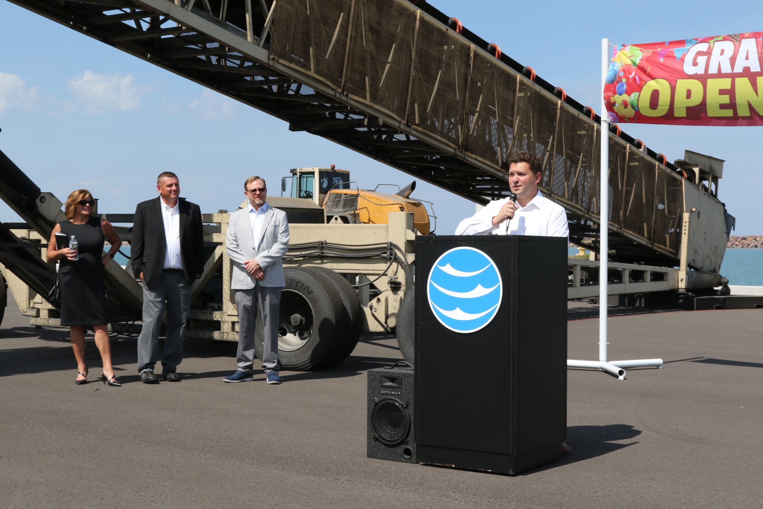- Ports of Indiana CEO Jody Peacock addresses the Berth 5 opening guests