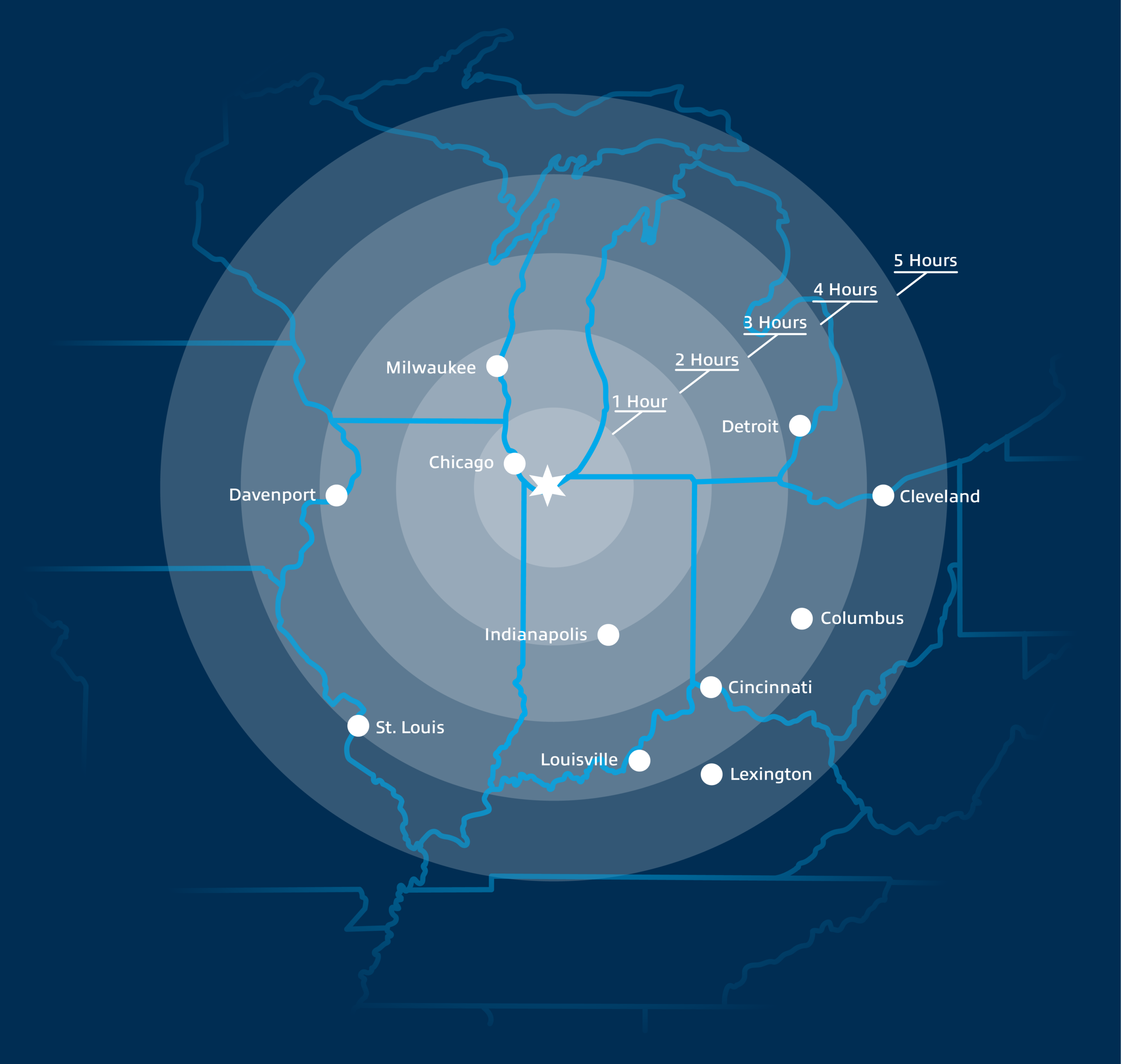 Ports of Indiana-Burns Harbor’s strategic location provides ocean service to Europe and barge service to the Gulf. Located just 20 miles from Chicago, the port can handle a wide range of your logistics needs.